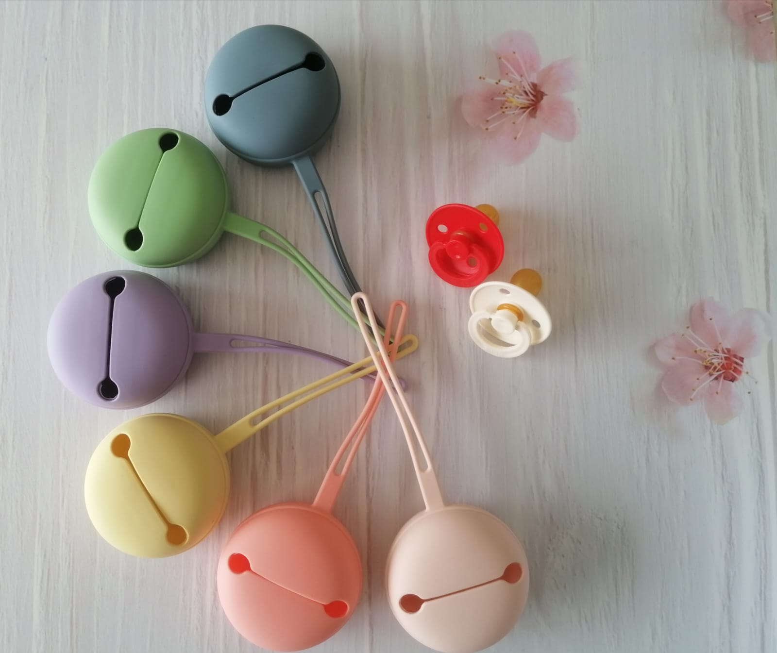 Practico estuche para guardar el chupete, lo puedes fijar a un bolso, coche, baranda cuna o a lo que más te acomode.