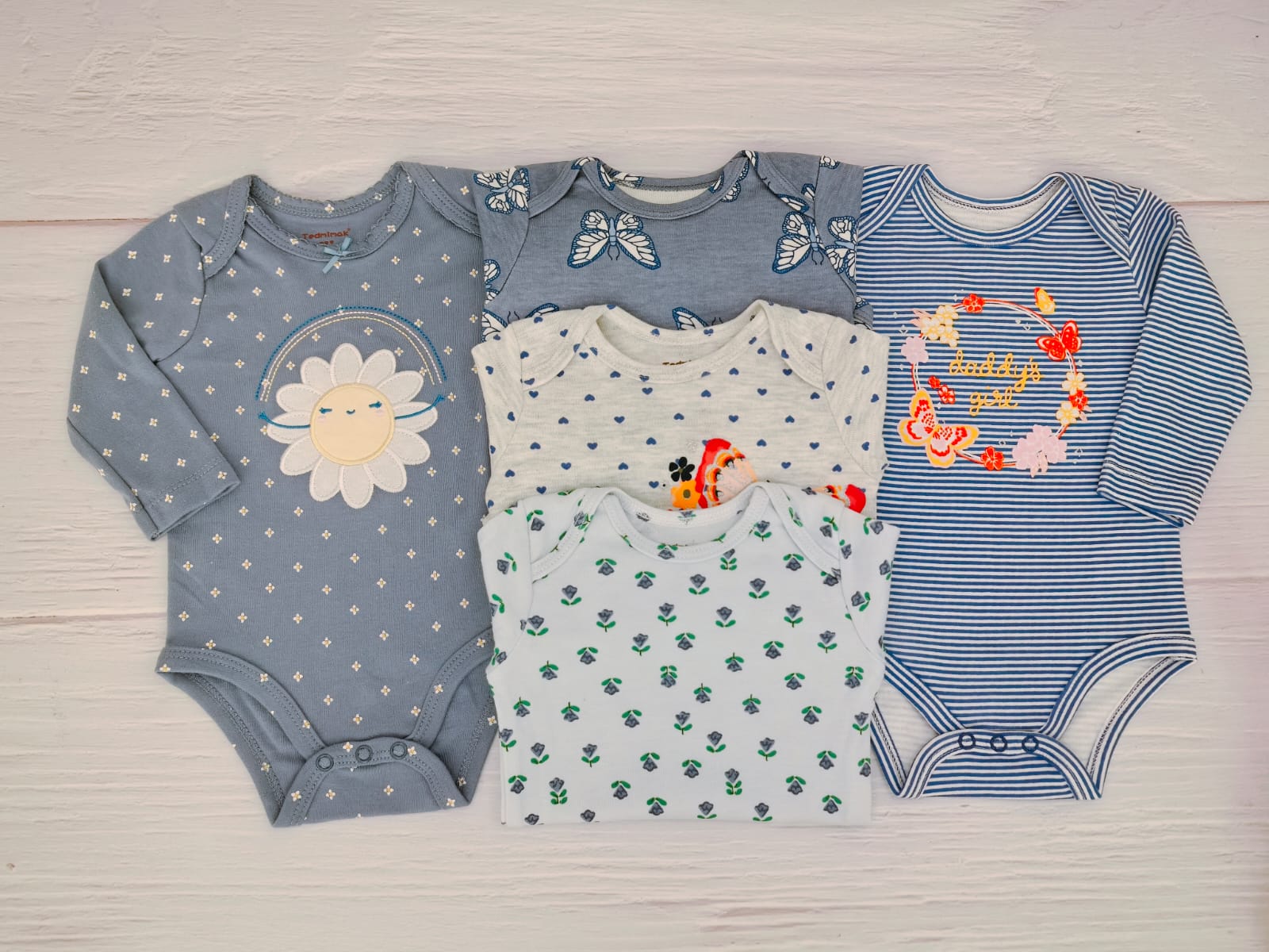 Pack 5 Bodys Manga Larga Flor Azul