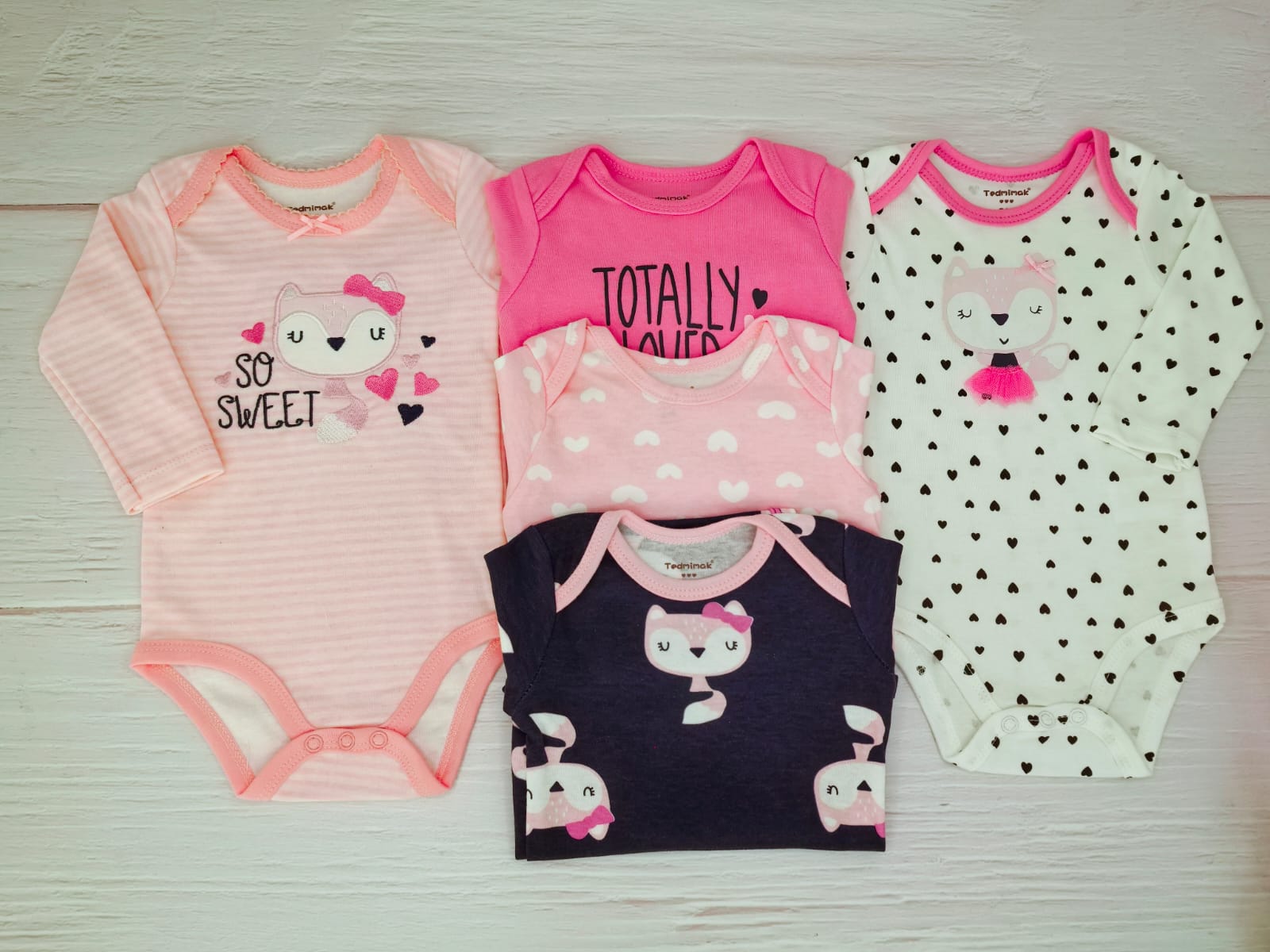 Pack 5 Bodys Manga Larga Zorrita Rosada